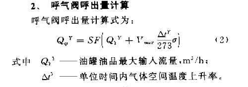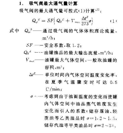 氣閥最大通氣量及呼吸閥口徑計算公式如下: